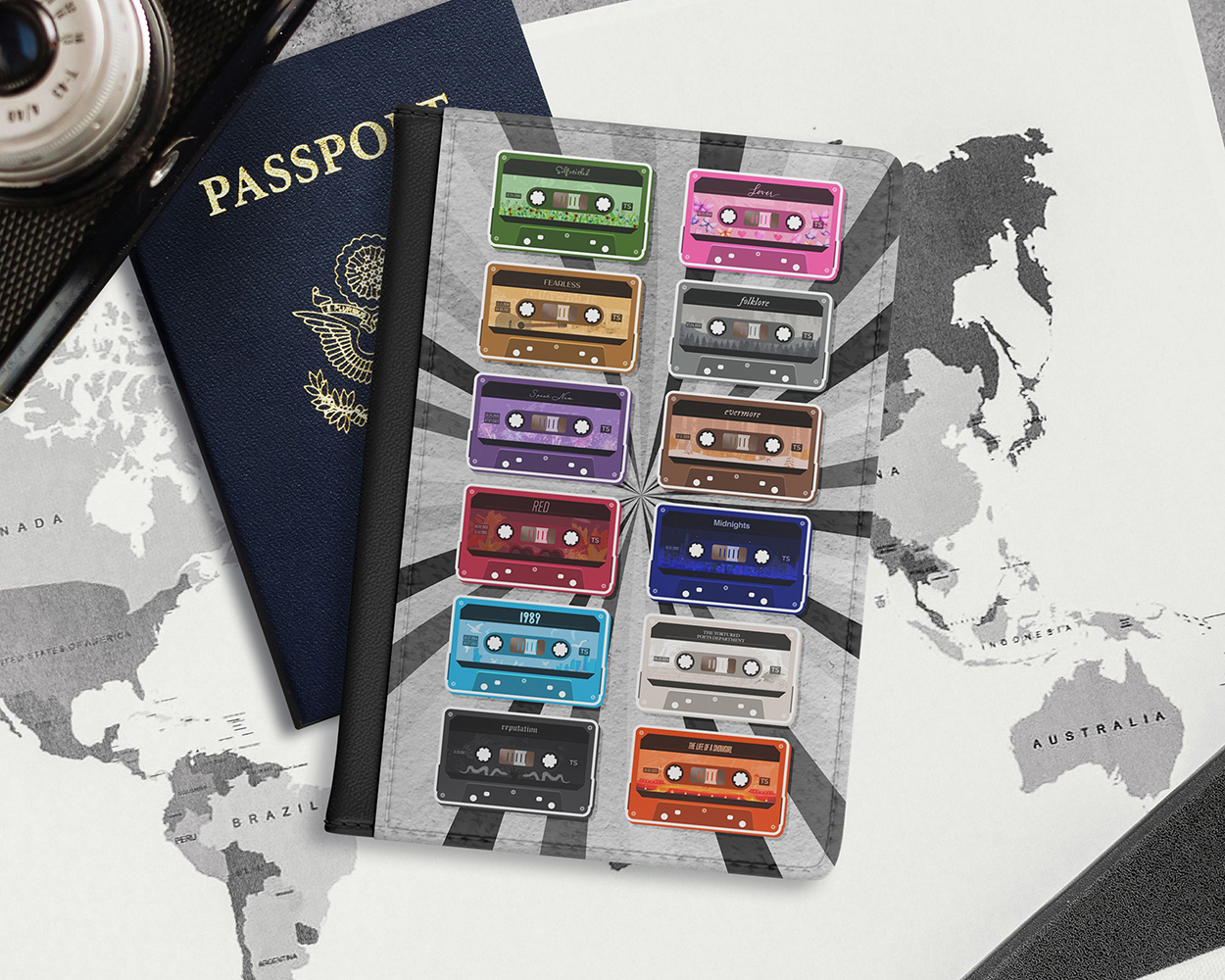 Unique passport cover, travel wallet, card holder, music merch, gift, and accessories.