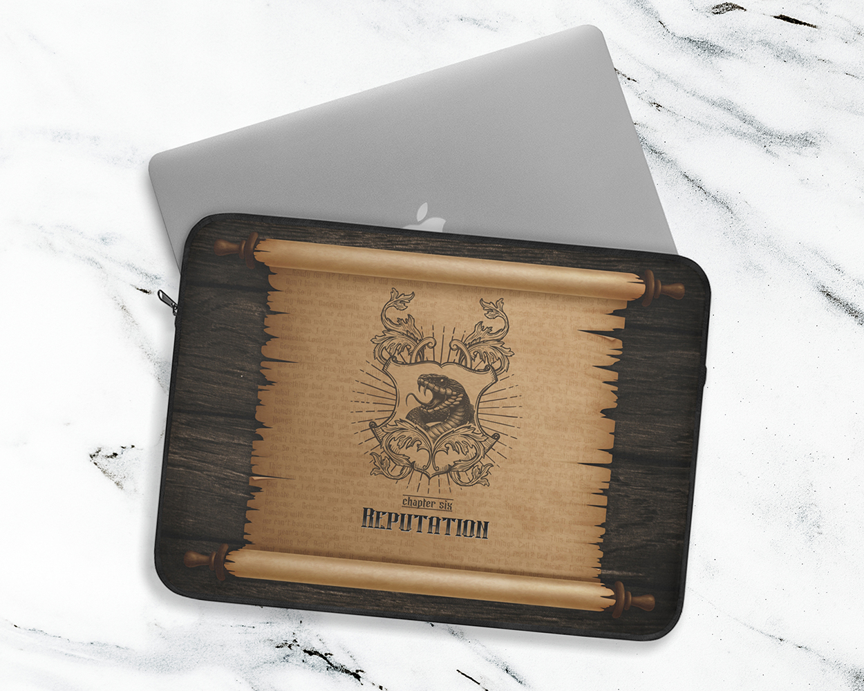 Collection of The Eras medieval scroll laptop sleeves