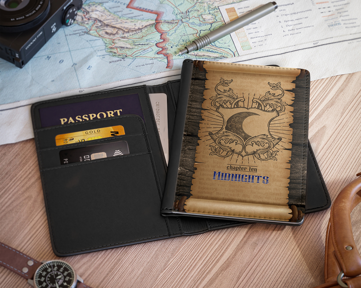 Midnights era medieval scroll passport cover