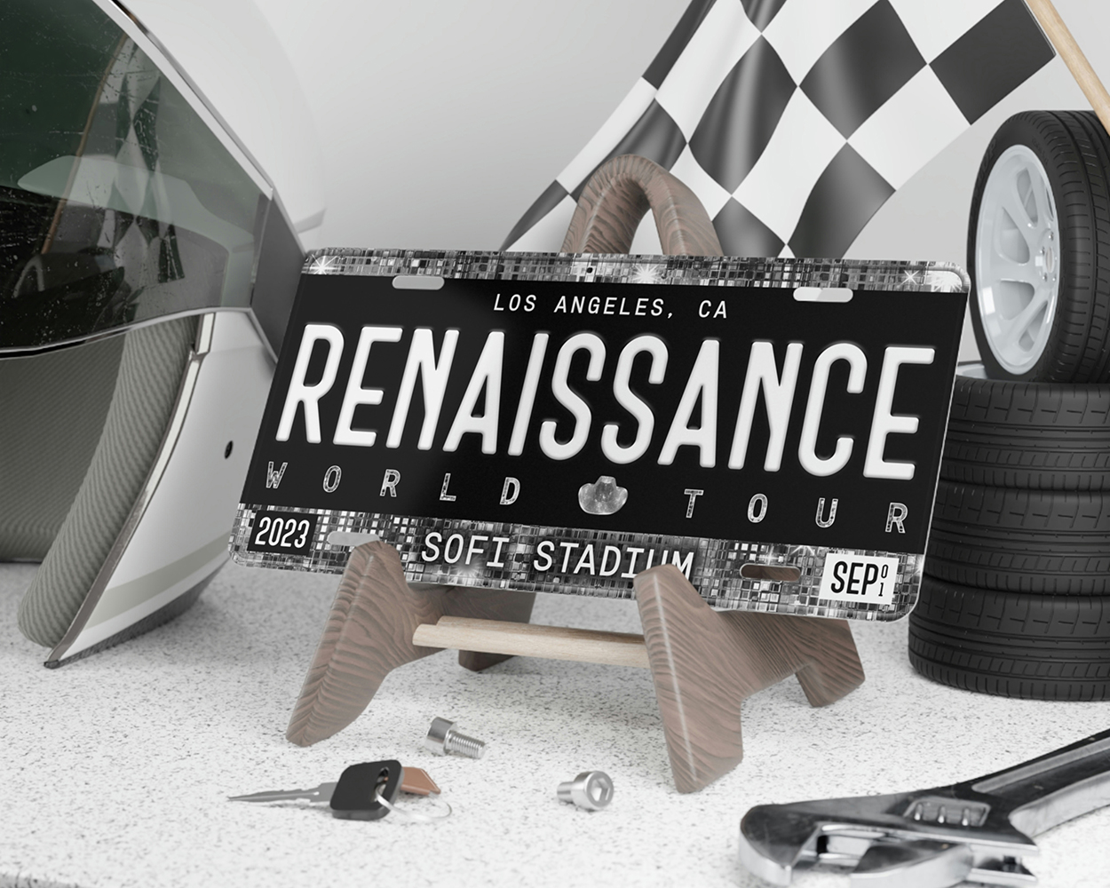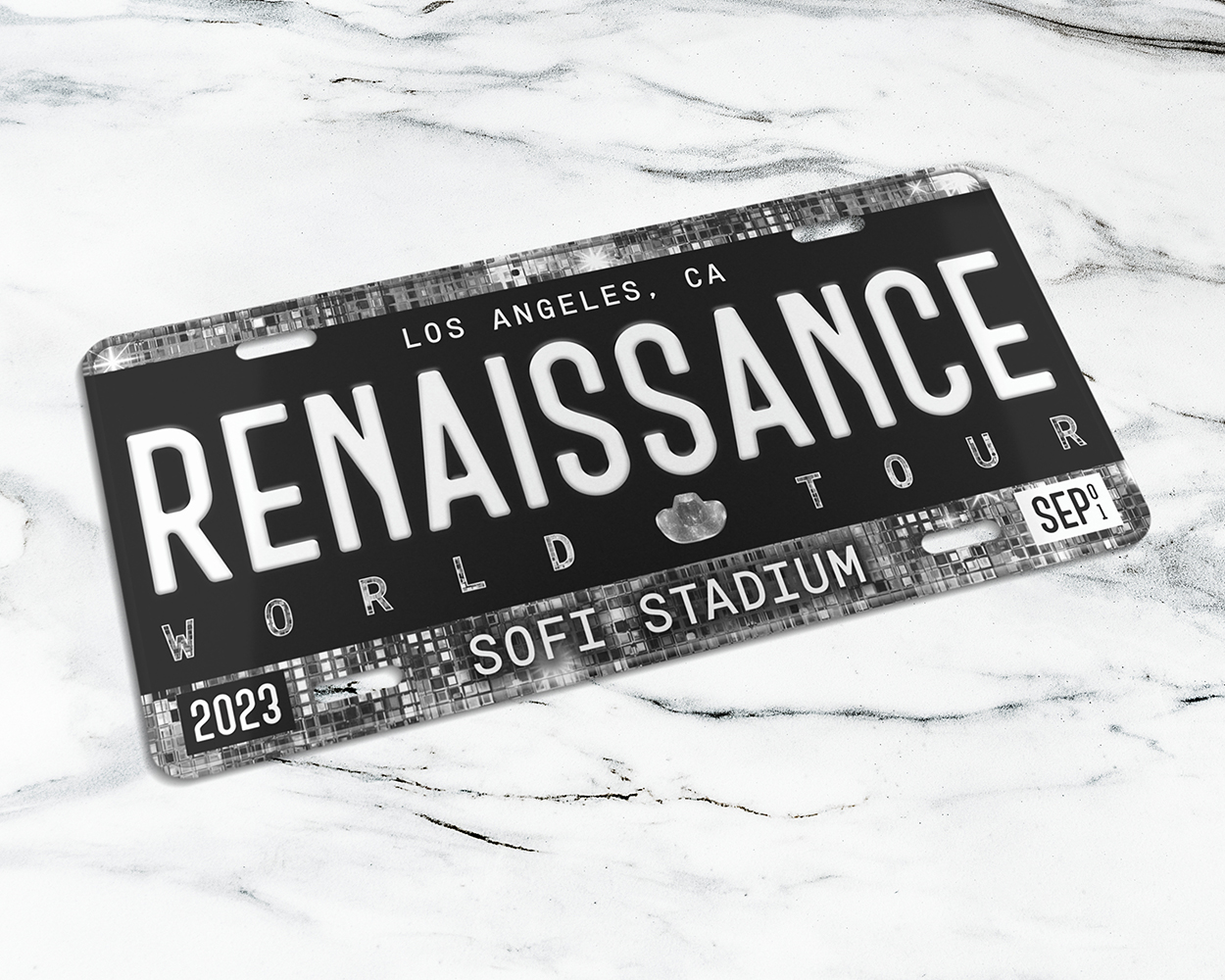 Choose your tour date, venue, city, state (or country), and get them printed on your license plate.