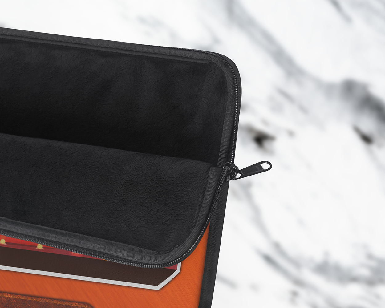 Carry your laptop with style! This high-quality sleeve is available in three sizes to protect your laptop from scratches and minor impacts. Printed on one side with a black backside, edging, and zip, it’s an elegant and stylish companion from day to day.