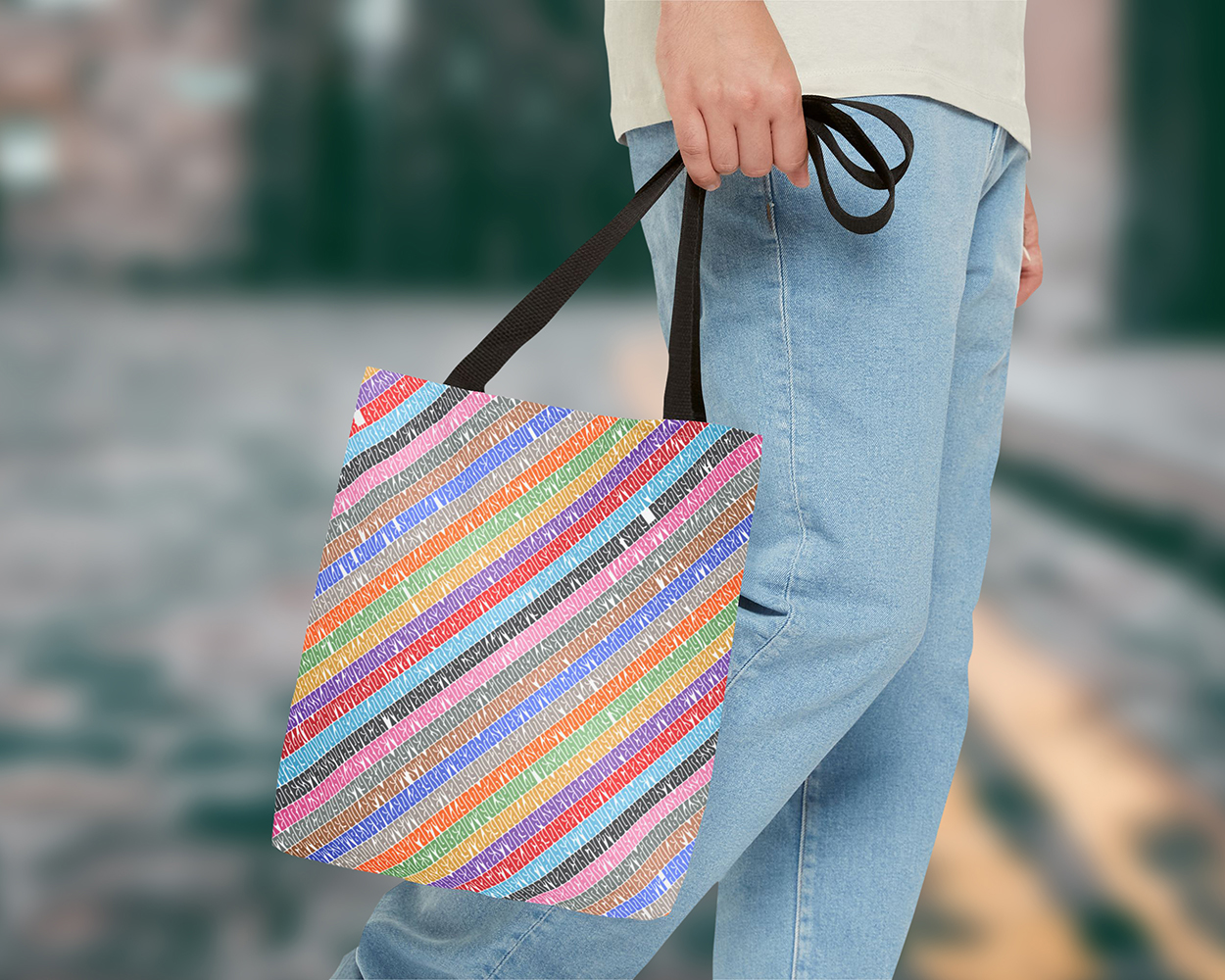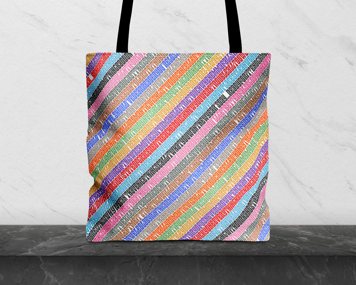 Distinctive tote bag, music merch, gift, and accessories. All-over print fabric bag.