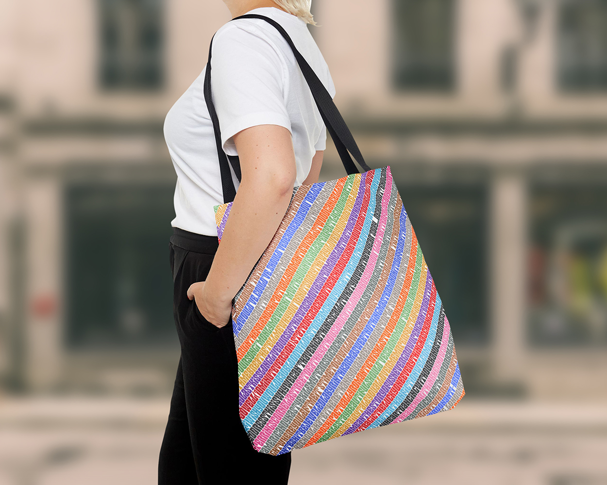 Distinctive tote bag, music merch, gift, and accessories. All-over print fabric bag.