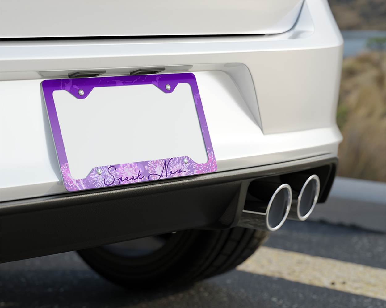 Each frame is made of a white aluminum base with a slick, glossy finish and a silver backing. These frames have a unique shape for high information visibility with your artwork in vivid detail. The holes are drilled into the frame along the edges to make the installation easy and hassle-free. The license plate frame does not come with the screws for attachment.
