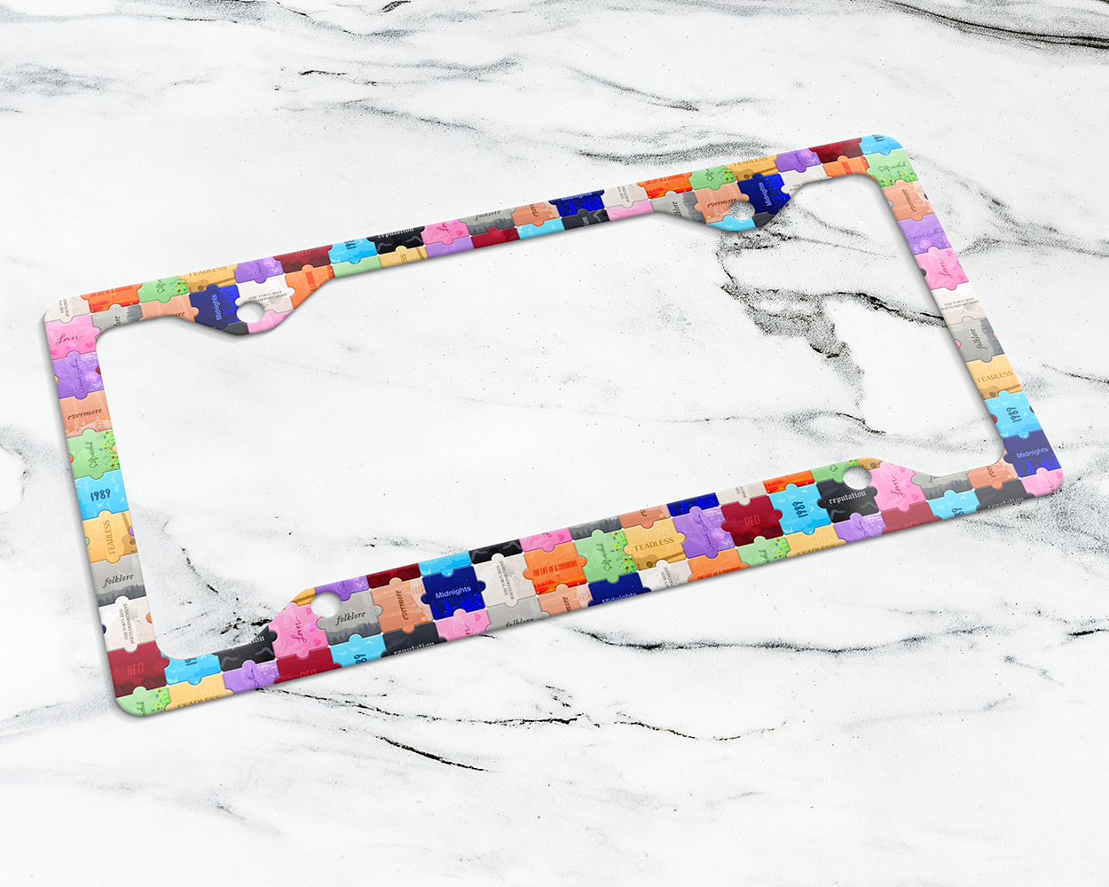 The Eras puzzles license plate frame